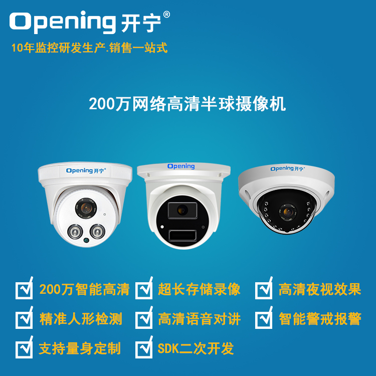- 開寧200萬網絡高清半球攝像機8大優(yōu)勢: