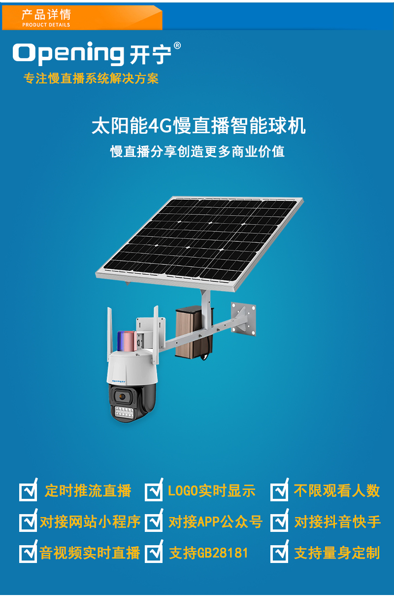 9、支持64/128G/256G內(nèi)存卡;可另選配太陽能供電系統(tǒng)實現(xiàn)無電無網(wǎng)實時慢直播;