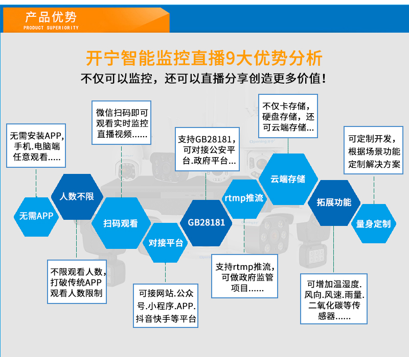 7、支持GB28181協(xié)議;可接公安.食品.工地.生產(chǎn).教育.畜牧.旅游等監(jiān)管部門平臺;