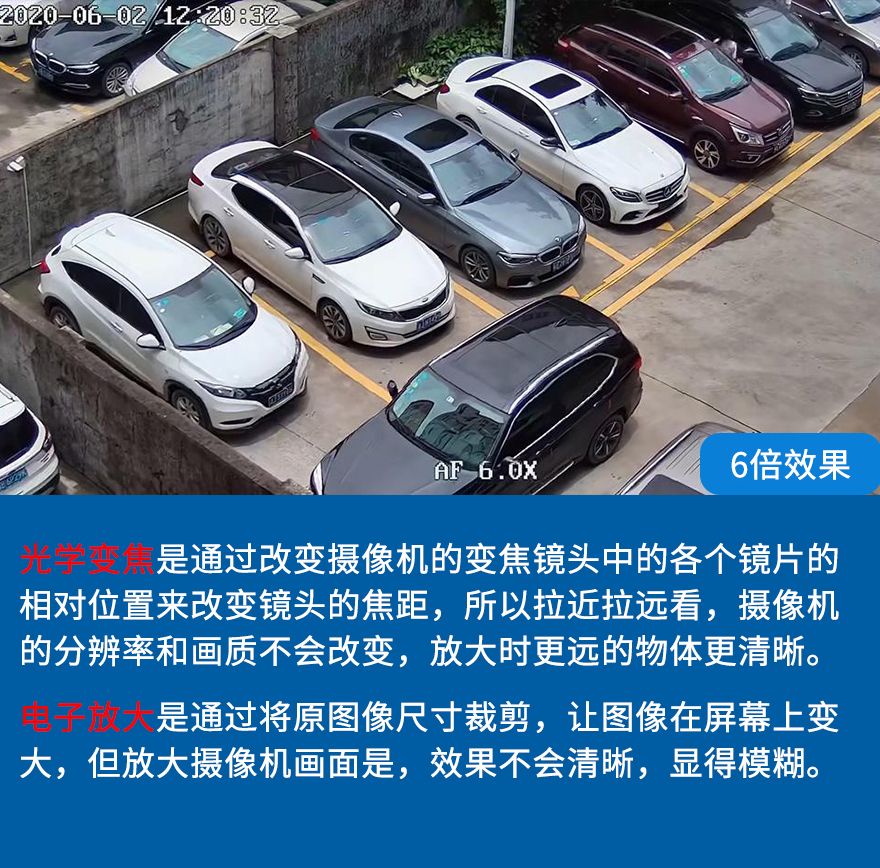 ★4顆大功率點陣紅外燈+4顆大功率點陣白光燈,夜視10-50米左右,高清光學自動6倍變焦鏡頭;