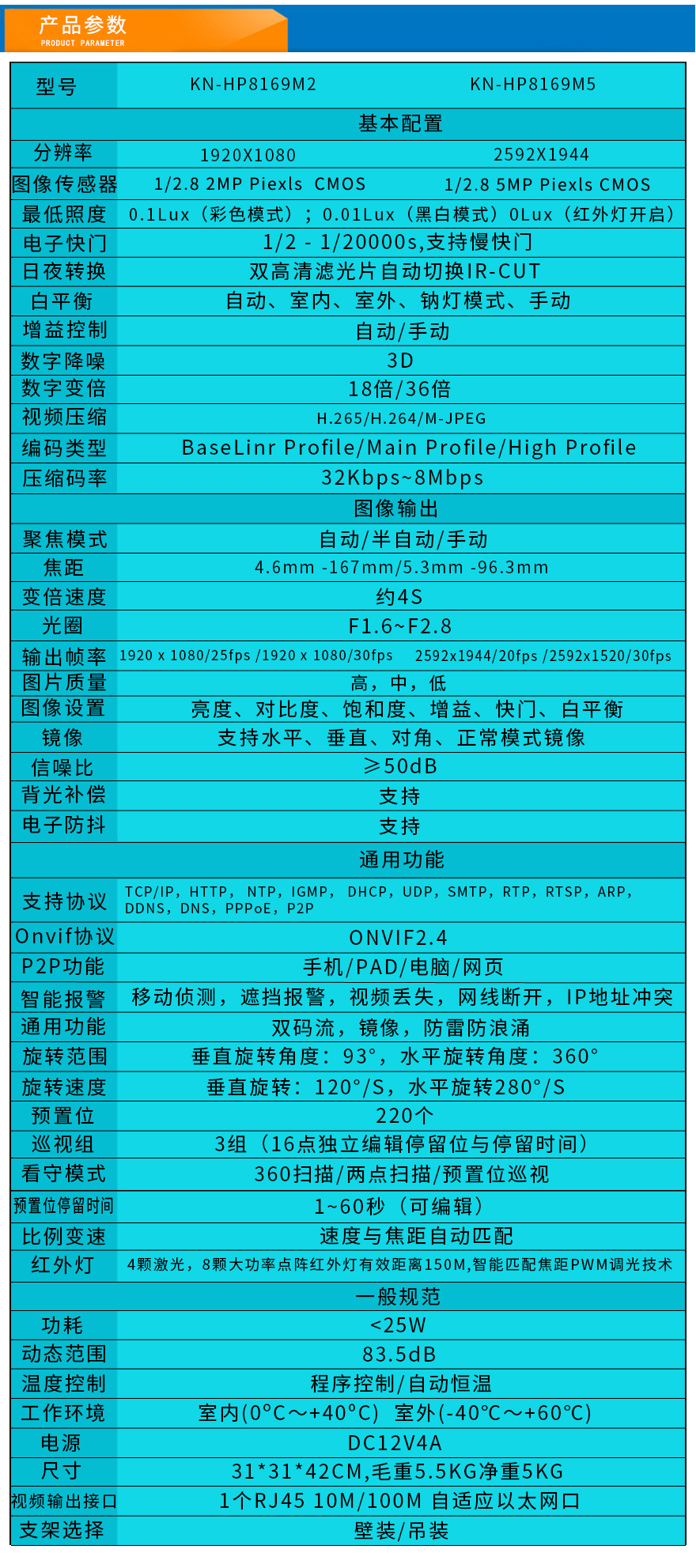 - 紅外防水網絡智能球機 KN-HP8169M2