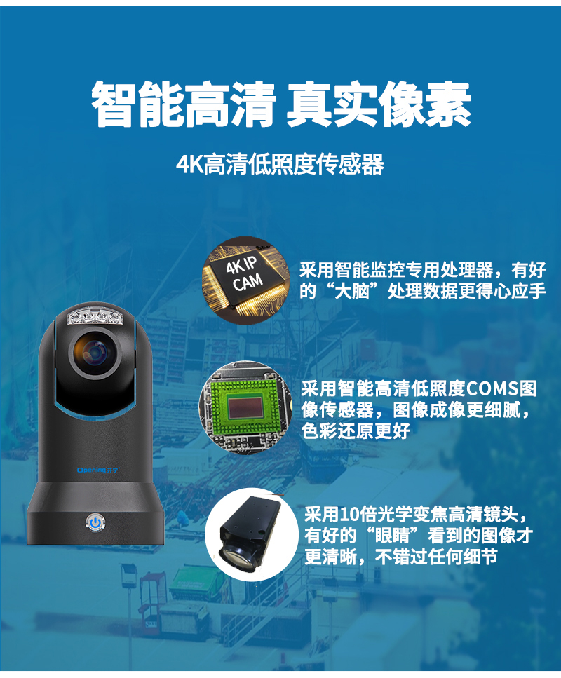11、4顆進(jìn)口大功率高效能點(diǎn)陣紅外燈,紅外夜視1-80米;10倍變焦高清鏡頭;